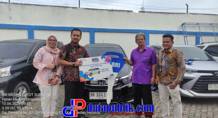 “BRI Medan Gatot Subroto mengucapkan selamat kepada pemenang dengan 1 unit mobil atas nama Bapak Dahlius. Semoga hadiah tersebut bermanfaat bagi mobilitas kesehariannya. Tentunya kami mengajak kepada nasabah semua terus setia memanfatkan berbagai layanan yang diberikan BRI, khususnya di BRI Medan Gatot Subroto,” katanya seperti diterima Jumat (22/8/2025).