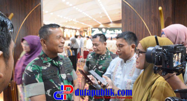 Danrem 031/Wira Bima memberikan tanggapan langsung kepada awak media, Jumat (7/3), usai menghadiri acara “Kajian Dhuha” di Gedung BRK Syariah.