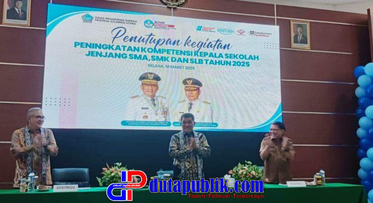 dutapublik.com, SULUT – Gubernur Sulawesi Utara (Sulut), Mayjen TNI (Purn.) Yulius Selvanus, menyampaikan sejumlah pernyataan menarik saat menutup kegiatan Peningkatan Kompetensi Kepala Sekolah jenjang SMA, SMK, dan SLB se-Sulut di Balai Penjaminan Mutu Pendidikan (BPMP) Sulut, Selasa (18/3/2025).