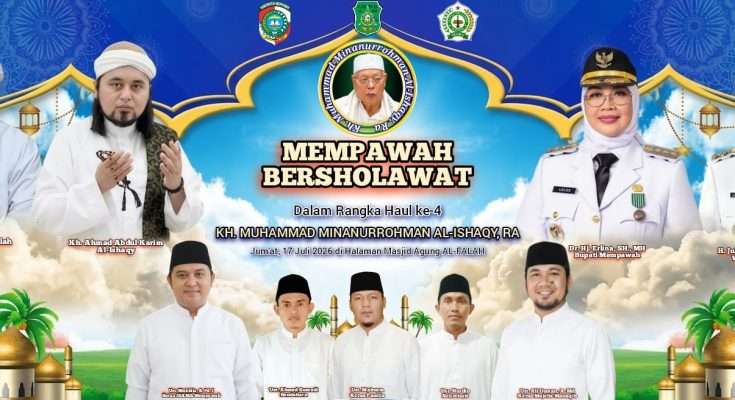 dutapublik.com, MEMPAWAH – Kegiatan Mempawah Bersholawat dalam rangka Haul Akbar ke-4 KH Muhammad Minanurrohman Al-Ishaqy, RA, akan digelar di halaman Masjid Agung Al-Falah, Kabupaten Mempawah, Kalimantan Barat. Acara tersebut dijadwalkan berlangsung pada Jumat malam Sabtu, 17 April 2026, mulai pukul 18.00 WIB hingga selesai.