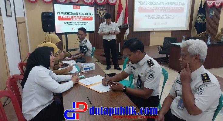 Kepala Lapas Kelas IIA Kuningan, Sukarno Ali, menyampaikan bahwa kegiatan ini merupakan langkah nyata dalam menjaga serta memantau kondisi kesehatan petugas sebagai aset penting dalam pelaksanaan tugas pemasyarakatan.