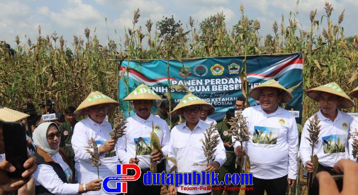 Didampingi Ketua DPP LDII Pusat, KH Chriswanto Santoso, bersama Bupati Blora, Dr. H. Arief Rohman, Mendes PDT Yandri mengapresiasi keaktifan LDII dan Pemkab Blora yang telah mengembangkan sorgum sebagai alternatif diversifikasi pangan nasional.
