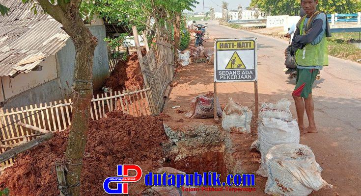 dutapublik.com, BEKASI – Proyek pemasangan pipa milik PDAM Tirta Bhagasasi yang berlokasi di Kampung Tanah Merah, Desa Karangsambung, Kecamatan Kedungwaringin, menyebabkan hancurnya tepi jalan cor hingga menimbulkan banyak lubang di permukaan jalan.