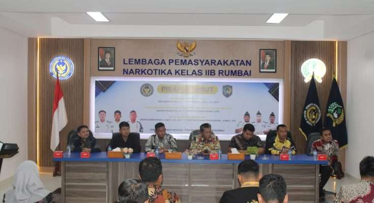 dutapublik.com, PEKANBARU – Lembaga Pemasyarakatan (Lapas) Narkotika Kelas IIB Rumbai menggelar acara pelepasan pejabat lama dan perkenalan pejabat baru. Jabatan yang diserahterimakan meliputi Kepala Subbagian Tata Usaha, Kepala Kesatuan Pengamanan Lapas (KPLP), serta Kepala Seksi Bimbingan Narapidana/Anak Didik dan Kegiatan Kerja (Binadik dan Giatja).