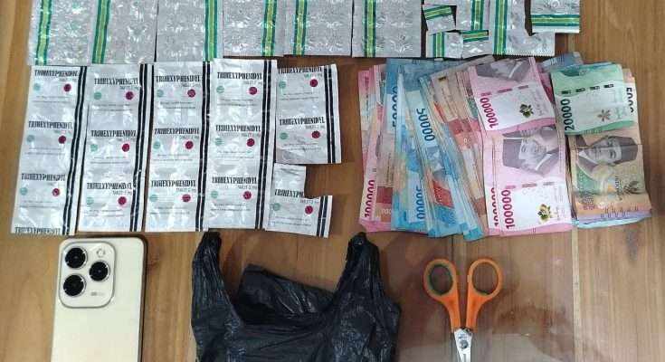 Sementara itu, tersangka AMM (31) ditangkap di halaman rumahnya pada pukul 21.30 WIB. Dari tersangka ini, petugas menyita 89 butir Tramadol, 41 butir Trihexyphenidyl, serta uang tunai sebesar Rp8.250.000 yang diduga hasil penjualan.
