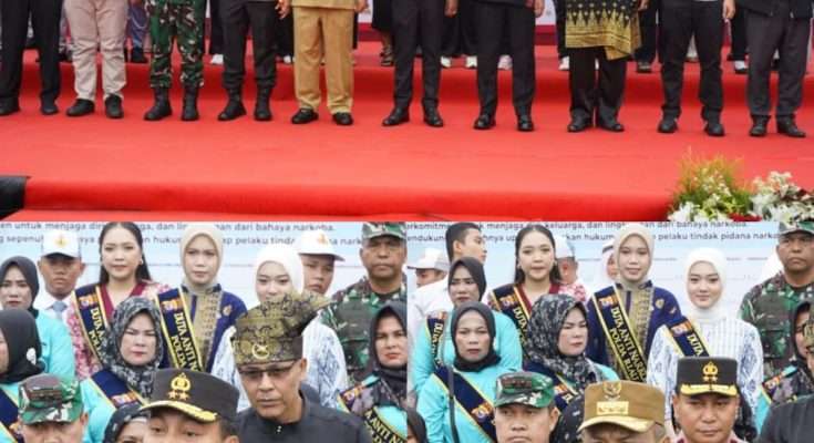 dutapublik.com, PEKANBARU – Pemerintah Provinsi Riau bersama Kepolisian dan unsur Forum Koordinasi Pimpinan Daerah (Forkopimda) menggelar Apel Kesiapan Satuan Tugas (Satgas) Anti Narkoba di Lapangan Apel Gubernur Riau, Sabtu (25/4/2026). Kegiatan ini dipimpin oleh Plt Gubernur Riau, SF Harianto, didampingi Kapolda Riau, Irjen Pol Herry Heryawan, serta ditandai dengan pemasangan rompi Satgas dan deklarasi komitmen bersama.