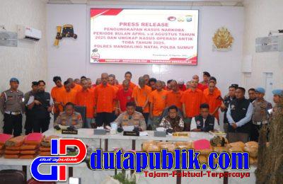 Polres Madina Tangkap 36 Pelaku Narkoba dan Sita 65,5 Kg Ganja Dalam Operasi April-Agustus 2025