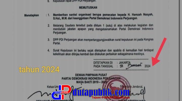 SK yang seharusnya menjadi bukti sah pemecatan Hamzah ternyata menyimpan kejanggalan fatal: dua versi tahun penetapan, 2024 dan 2025 muncul di berbagai dokumen. Bahkan, kuasa hukum penggugat menduga kuat adanya pemalsuan tanda tangan Ketua Umum PDI-P Megawati Soekarnoputri dalam dokumen SK versi 2025.