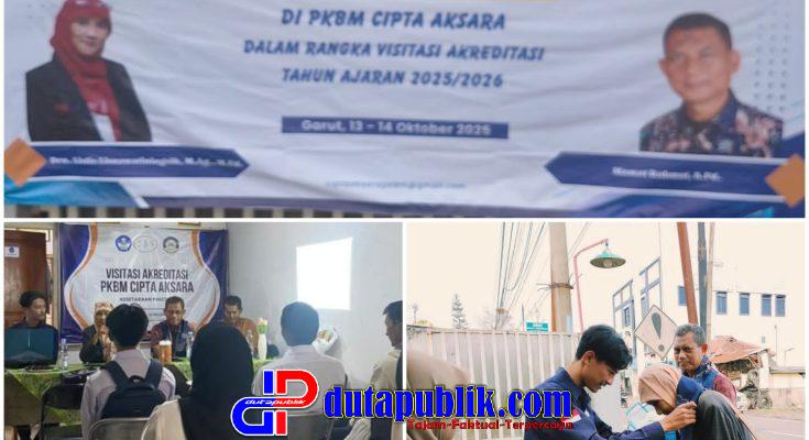 dutapublik.com, GARUT – Pusat Kegiatan Belajar Masyarakat (PKBM Cipta Aksara) yang beralamat di Kampung Saung Cendol, Desa Ciela, Kecamatan Bayongbong, Kabupaten Garut, menerima kunjungan tim asesor dalam rangka visitasi akreditasi. Kegiatan berlangsung selama dua hari, mulai 13 hingga 14 Oktober 2025, sebagai bagian dari proses penilaian mutu lembaga pendidikan nonformal dalam memberikan layanan pendidikan bagi masyarakat.